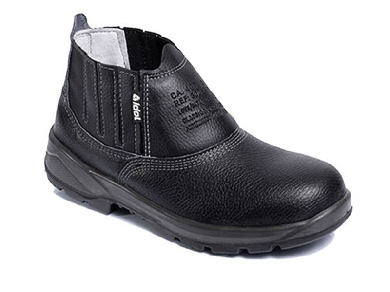 Botina de Segurança modelo ocupacional, fechamento em elástico, solado em poliuretano bidensidade confeccionada em couro Vaqueta, bico em PVC e palmilha antibacteriana removivel. Tamanhos do 34 ao 48